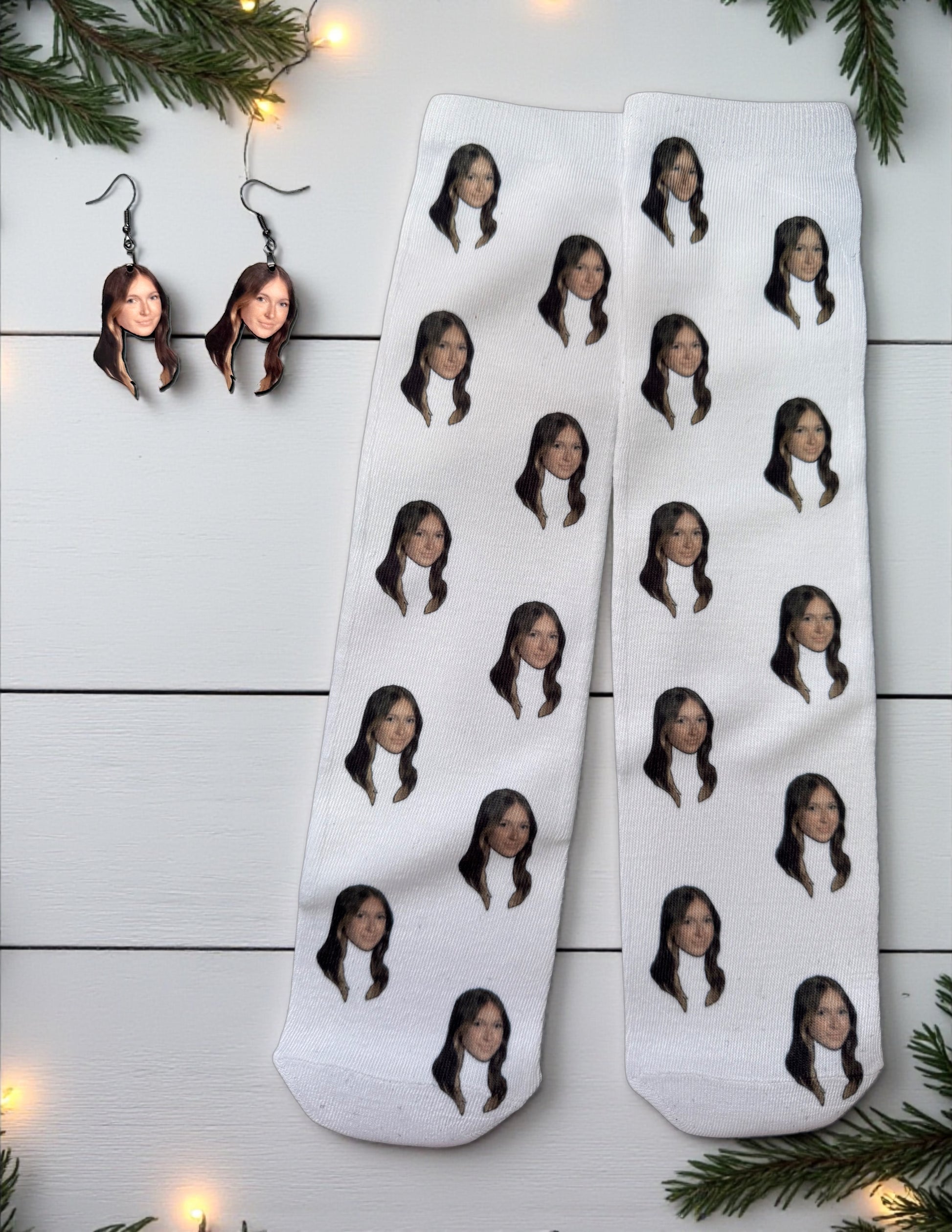 Showing off your kid is probably a parent's favorite thing to do. What better way to do it than with your kids face on socks and earrings!